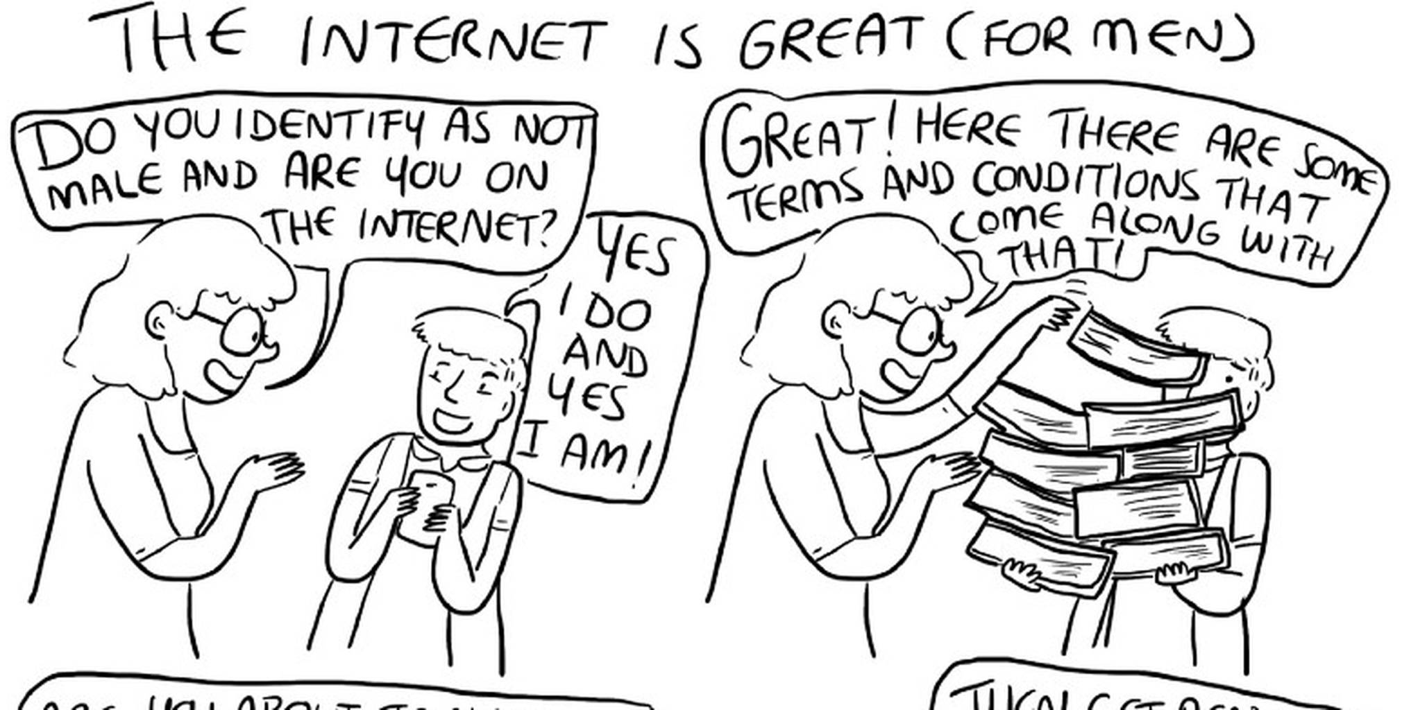 The message in the comic is clear: We all love the internet, it’s a place we’re happy to be. But the experience can be quite fraught when you account for how heavily policed women’s opinions and physical appearance tend to be online.
