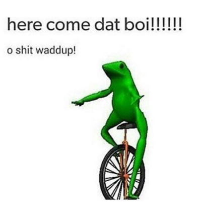 Still, why is this particular frog “Dat Boi”? Why is he on a unicycle? Well, why not? The name just fits, and uncorrupted nature of this idle vision—hey, what the heck, let’s see cartoon a frog on a one-wheeled conveyance designed for bipeds—was enough to break down the walls of a usually cloistered meme society. For once, the inside joke had somehow gotten out.