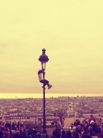 A 26-year old from the streets of Guinea, Traore bootstrapped his way to playing for several teams both there and in France, where his father lives, but eventually juggling school, work helping his art merchant father, and playing on a team got to be too much even for this nimble lad and he was — ahem — de-scouted. Without a professional outlet for his skills, but with an entrepreneurial and entertainer’s nature, he took to the streets, the flagpoles, and the lamp posts of Paris’ Montmartre district to earn a living as a street performer.