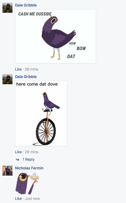 But then the birds hit the U.S. over the weekend, and now they are everywhere. The headbanging trash dove is being celebrated with remixes, videos, and comment spam galore. Its viral spread is reminiscent of Le Lenny Face ( ͡° ͜ʖ ͡°), the emoticon that dominated 4chan message boards in 2012.