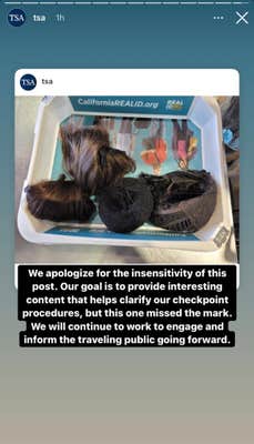 On Instagram, the TSA posted an apology on their story, saying, “We apologize for the insensitivity of this post. Our goal is to provide interesting content that helps clarify our checkpoint procedures, but this one missed the mark. We will continue to work to engage and inform the traveling public going forward.”