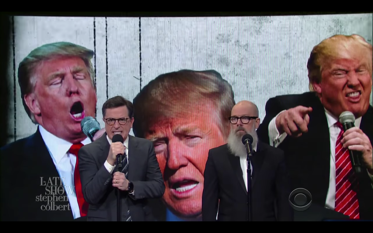 From Zika to President-elect Donald Trump, Colbert recaps the year’s best and worst as Stipe stands idly by, refusing to utter the words, “I feel fine.” At the end, James Franco, another guest for that night’s show, comes out to drive home the chorus.